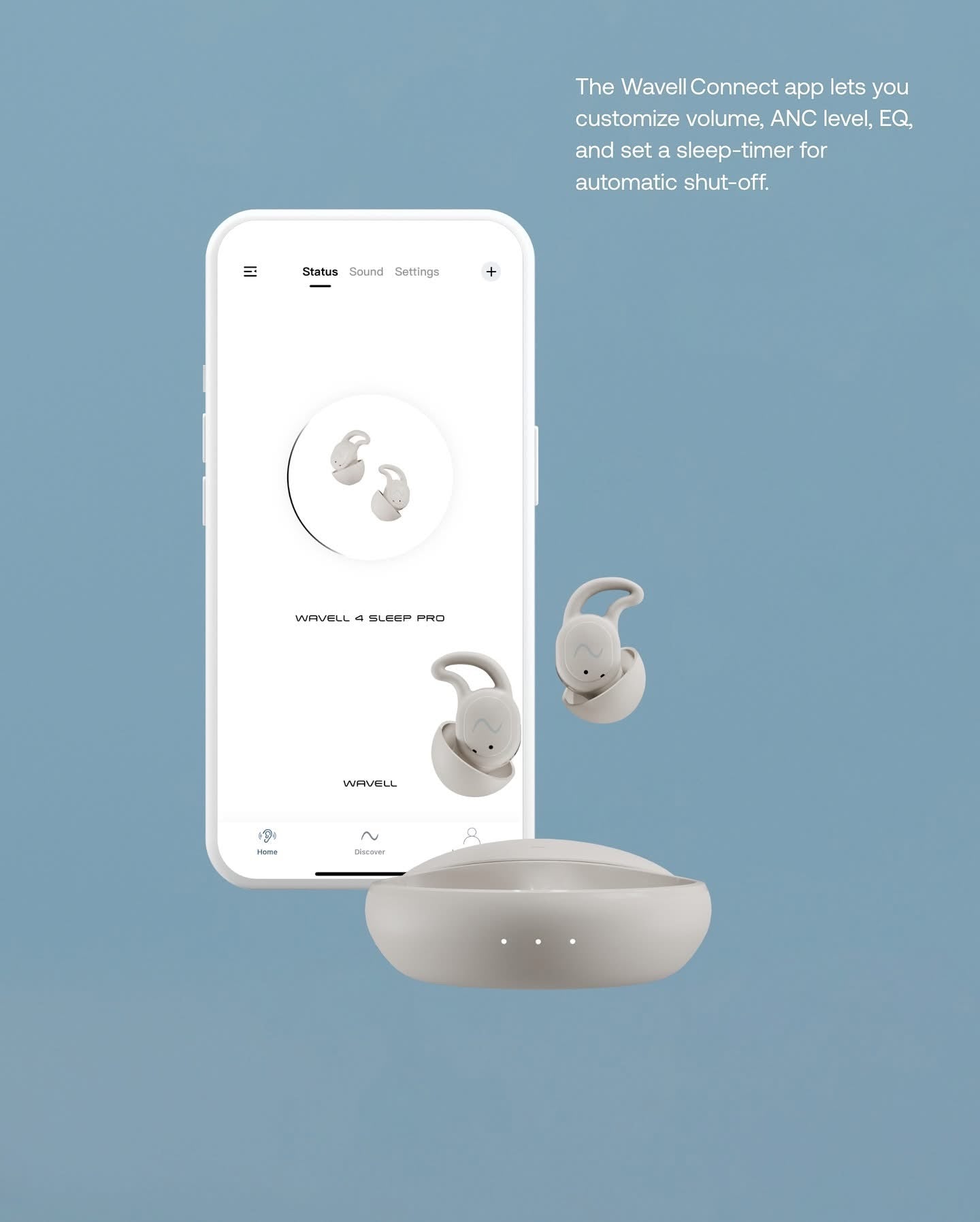 Hent Wavell Connect appen og få en tilpasset lydoplevelse. Du kan blandt andet lave dine egne EQ-indstillinger, aktivere Sleep mode og timer, eller tilpasse støjreduktion efter dine præferencer. Gør dine Wavell 4 Sleep Pro unikke for dig med få klik.